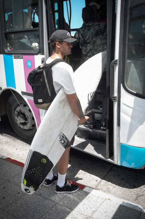“Ese día había terminado mi rutina de gimnasio y me quise ir a entrenar a las playas del sur. El primer chofer me dijo que no se podía y me explicó por qué, el segundo casi me cierra la puerta en la cara y el tercero, directamente, como me vio solo en la parada, me hizo con el dedo que no, sin parar…  Me sentí mal, muy raro, porque estamos hablando de la Capital del Surf, de una ciudad que tiene a dos campeones del mundo y a Fernando Aguerre, uno de los directivos más importantes del mundo. Y se trata de un deporte muy sano en todo sentido, que ha crecido mucho hasta el punto de haberse transformado en panamericano y olímpico (en Tokio 2020)”, cuenta quien justamente será el primer argentino en participar de un evento así, cuando compita desde el 26 de julio en los Panamericanos de Lima.  Muñiz, además, agrega su experiencia en otros países. “En Brasil, Australia y Estados Unidos, el tema está reglamentado y se puede subir con tablas. En algunos casos van atrás, en racks con sogas para que no se muevan ni se caigan. O en otros, atrás de los micros, en portatablas. Nosotros no les decimos en cuántos micros podrían ir o dónde deberían ponerlas. Sólo les pedimos ayuda para desarrollar nuestro deporte…”, explica.