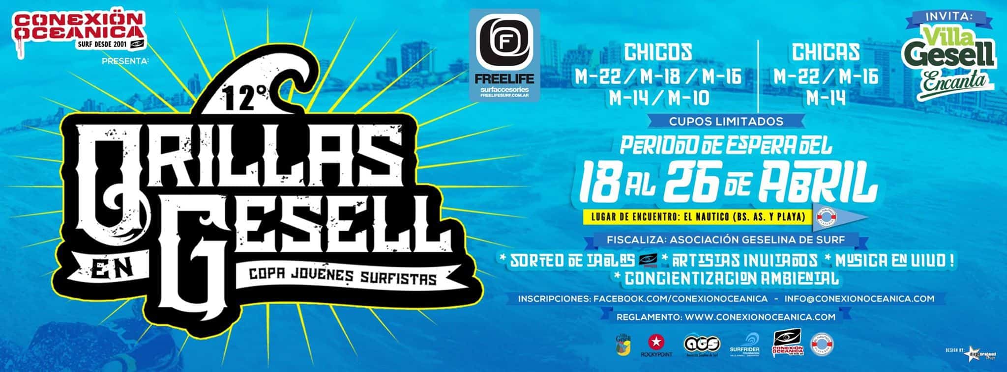 Conexión Oceánica, presenta la 12º edición del torneo de Surf Orillas en Gesell, El periodo de espera de ola será del 18 al 26 de Abril....